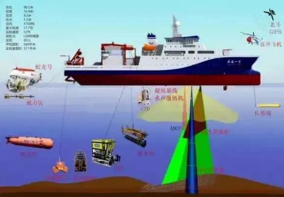“深海一號(hào)”是我國首艘自主設(shè)計(jì)載人潛水器支持母船,為我國7000米級(jí)“蛟龍?zhí)枴陛d人潛水器專用母船。船長90.2米,型寬16.8米,設(shè)計(jì)排水量4500噸,續(xù)航力超過12000海里,自持力達(dá)到60天,具有全球無限航區(qū)航行能力。除“蛟龍?zhí)枴陛d人潛水器,“深海一號(hào)”還可同時(shí)搭載“海龍?zhí)枴睙o人纜控潛水器和“潛龍?zhí)枴睙o人無纜潛水器,具備“三龍”系列潛水器同時(shí)作業(yè)能力?!膀札?zhí)枴陛d人潛水器則是我國自行設(shè)計(jì)、自主集成研制的載人潛水器,是目前世界下潛能力最深的作業(yè)型載人潛水器,可在全球99.8%的廣闊海域中使用,對于我國開發(fā)利用深海的資源有著重要的意義。
