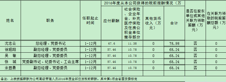 浙江省二輕集團(tuán)公司高級管理人員2016年度薪酬情況