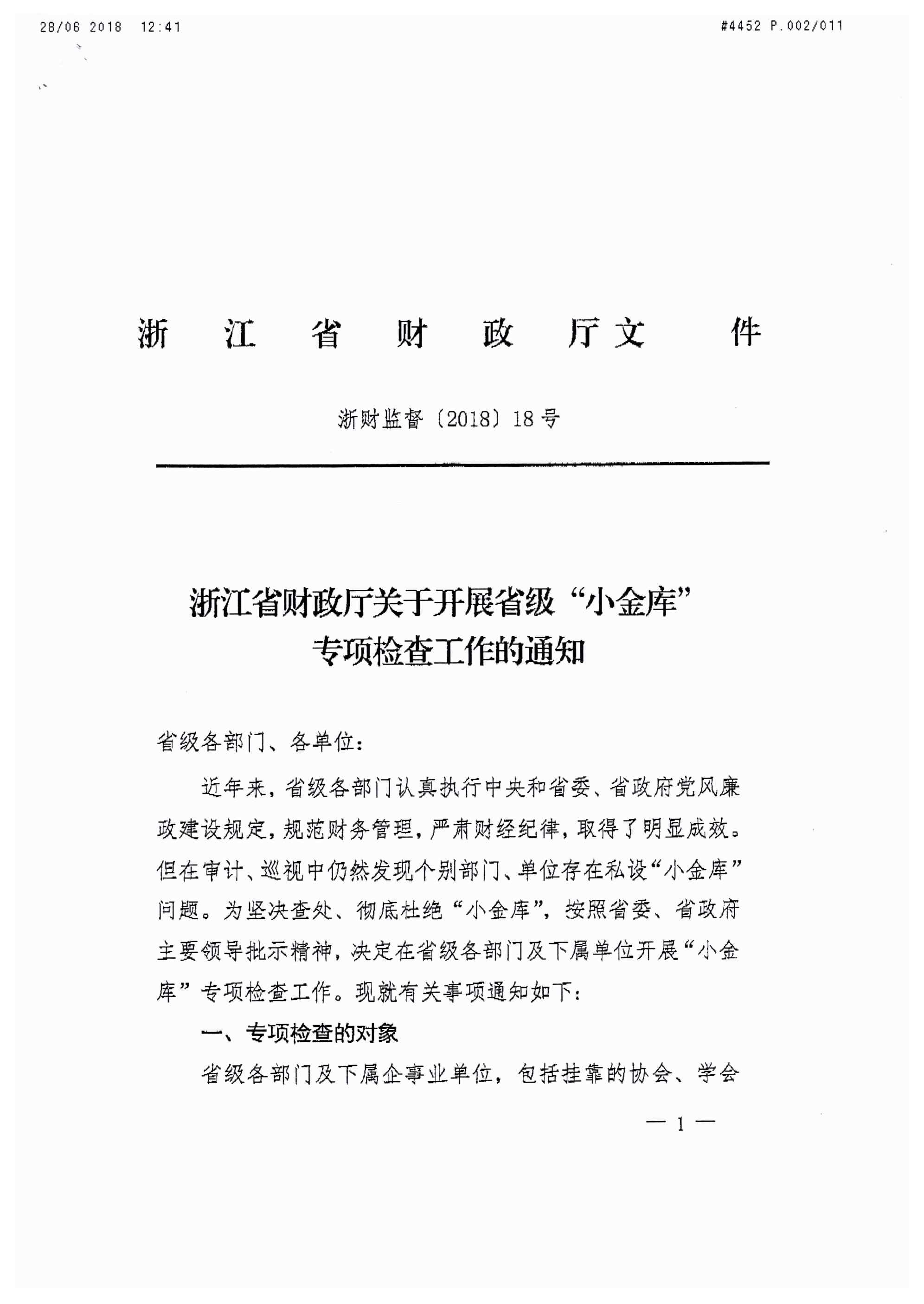 浙江省財(cái)政廳關(guān)于開展省級(jí)“小金庫”專項(xiàng)檢查工作的通知