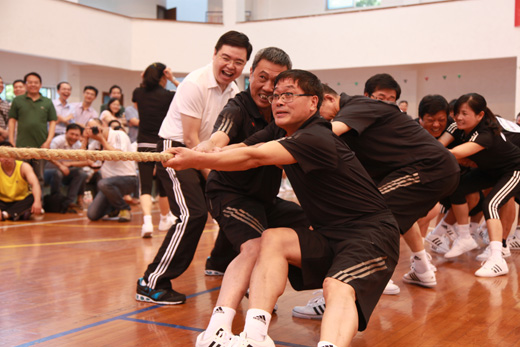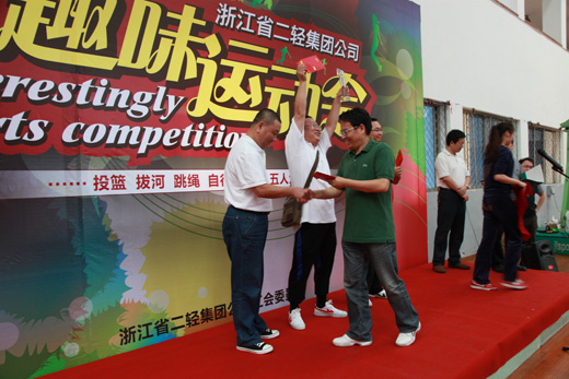 9月23日,集團(tuán)公司工會(huì)在浙江工業(yè)大學(xué)體育館成功舉辦了首屆趣味運(yùn)動(dòng)會(huì),系統(tǒng)內(nèi)11家單位300多名職工參加了5人6足、自行車慢騎、跳長繩、定點(diǎn)投籃、拔河等5個(gè)項(xiàng)目比賽。申達(dá)機(jī)器制造股份有限公司代表隊(duì)豪取三個(gè)項(xiàng)目冠軍,二輕房地產(chǎn)開發(fā)有限公司代表隊(duì)、皮革塑料有限公司代表隊(duì)分別斬獲一項(xiàng)比賽冠軍,匯孚集團(tuán)有限公司、華江科技發(fā)展有限公司獲優(yōu)秀組織獎(jiǎng)。集團(tuán)公司副總經(jīng)理徐旭陽,黨委副書記、工會(huì)主席張城為獲獎(jiǎng)單位頒獎(jiǎng)。